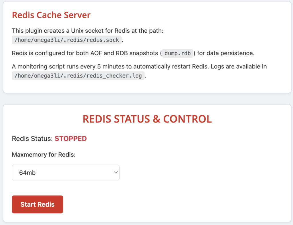 Navigate to Redis Socket under the HostUp Features category. There you will find your unique socket path – save this if you want to use Redis in other applications.
