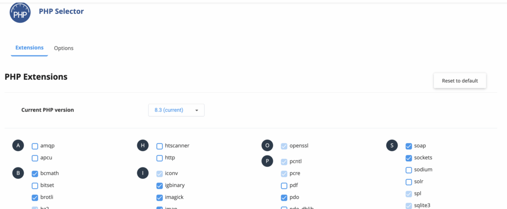 Många moderna system som WordPress, WooCommerce och Magento kräver specifika PHP-tillägg (extensions) för att fungera korrekt. Om du ser felmeddelanden om att moduler som intl, soap eller fileinfo saknas, kan du enkelt aktivera dessa själv via kontrollpanelen utan att behöva kontakta support.