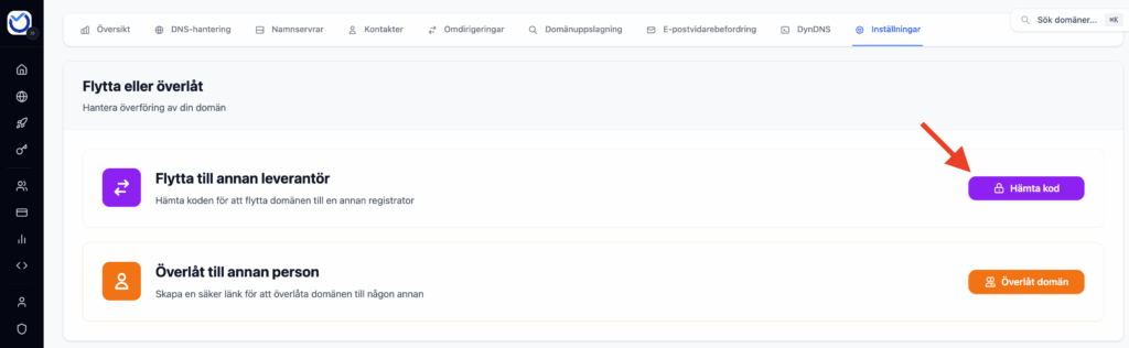 • Begär ut kod från nuvarande registrar: Logga in till din nuvarande registrar eller kontakta deras kundtjänst och begär en överföringskod, även känd som EPP-kod eller authentiseringskod. Denna kod är ett lösenord som bevisar din behörighet att flytta domännamnet.