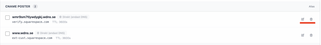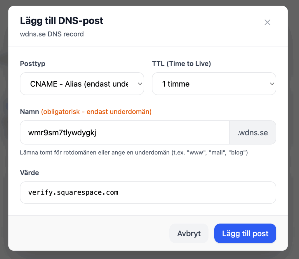 Om något skulle gå fel kan du alltid redigera eller ta bort DNS posten och börja om: