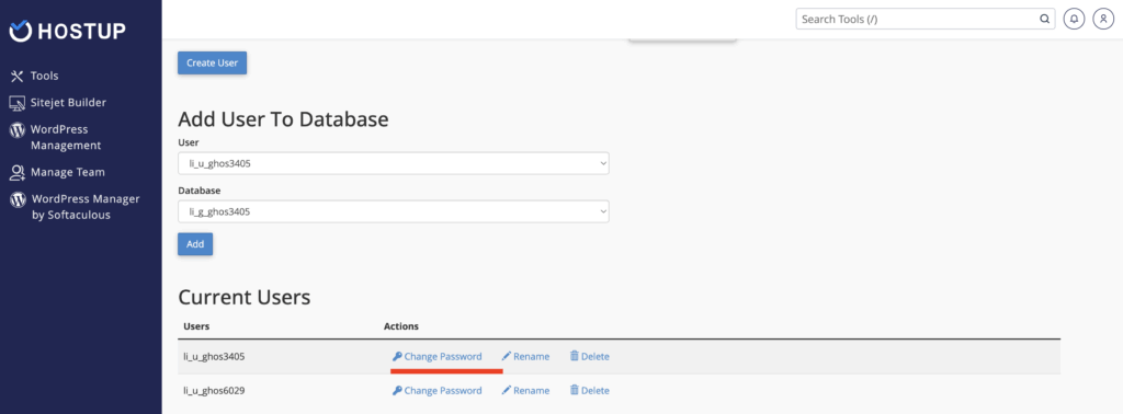 DB_USERi din öppna fil). - Klicka på Change Password bredvid användaren.